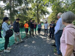 Le 22 juillet, la professeure Tanya Handa a invité ses étudiants du programme de formation en foresterie urbaine de l’UQAM à visiter le futur micro-arborétum de la halte du rang des Vingt à Saint-Basile-le-Grand. Le programme Ufor vise à augmenter l’offre de leaders professionnels bien qualifiés, capables de gérer la foresterie urbaine dans de nouveaux écosystèmes urbains façonnés par des conditions socioculturelles et économiques complexes. Photo : T. Handa