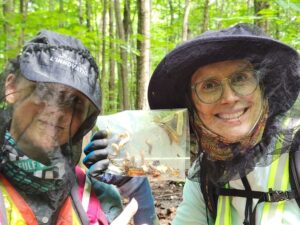 La Fondation a saisi l’opportunité avant la fin des classes pour transmettre des connaissances aux jeunes du primaire sur les menaces à la biodiversité du mont Saint-Bruno. Les stagiaires de l’UQAM Olivier Desrochers, Karine Manoli et Béatrice Rousselle, iels-mêmes récipiendaires d’apprentissage sur le terrain dans le cadre des projets de la Fondation, ont transmis aux élèves des écoles primaires Mont-Bruno et Sacrés-Coeurs leurs connaissances sur l’anthrisque des bois et la limace Arion, deux espèces exotiques envahissantes.