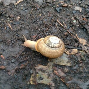 Le 10 juillet 2021. Les escargots accumulent certains composés du sol dans leurs tissus et sont de précieux indicateurs naturels de la qualité des sols (sentier près du lac des Atocas).